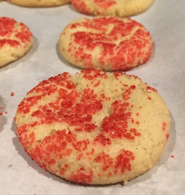 My mom’s recipe called for rolling the dough into balls by hand and this was probably one of the reasons I did not make these cookies since I hate rolling cookies. I hate how sticky and greasy my hands get, and I hate the time involved. So boring. Instead, I use a smallish cookie scoop — it is probably a 1 teaspoon size.