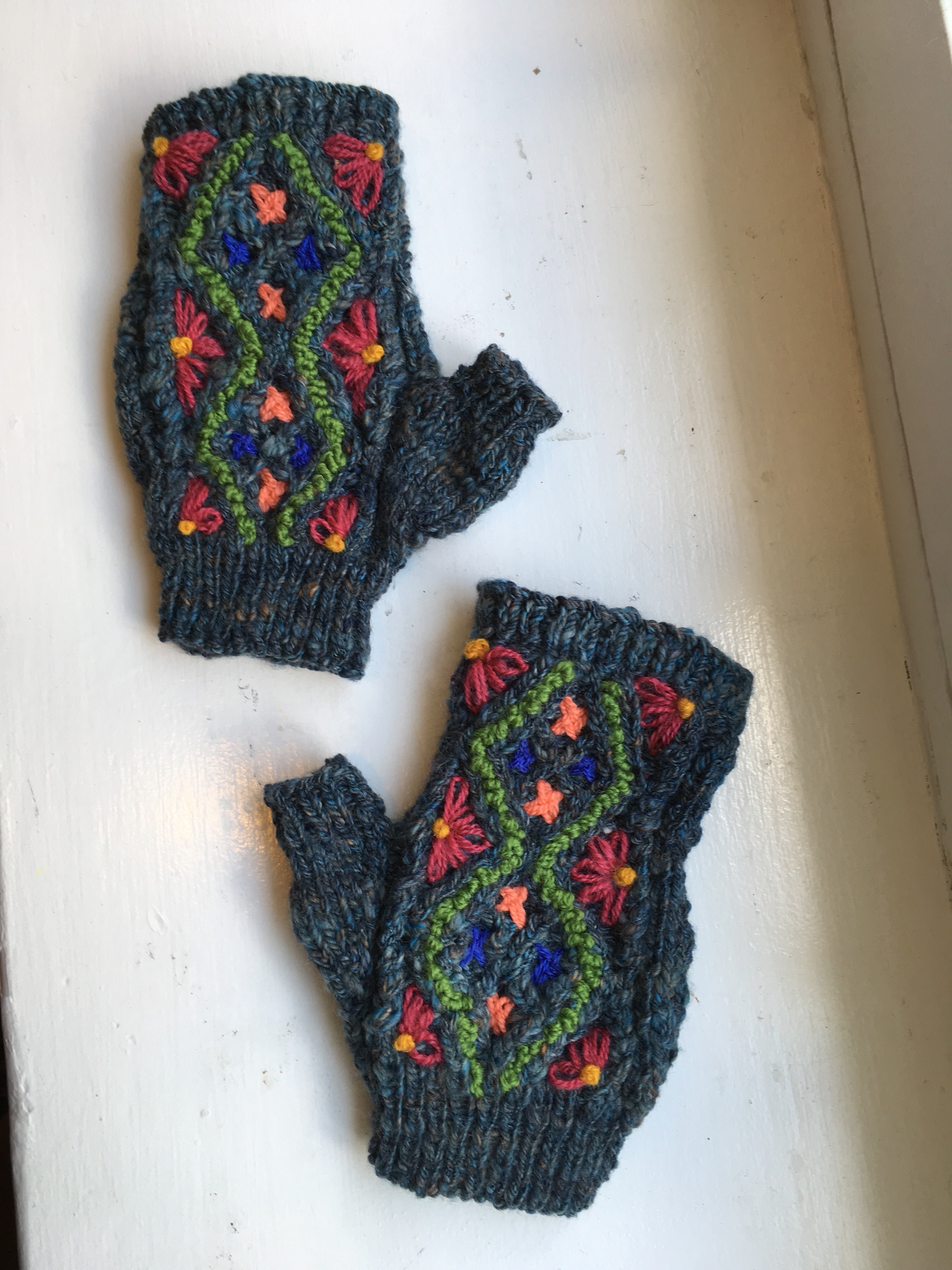 First, I used green woold to embroider Palestrina knots in the valley between the diamonds.